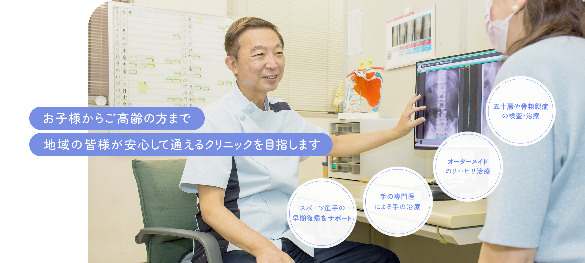 院長はプロスポーツのチームドクターであり、各年代のスポーツ整形を診療してきました。